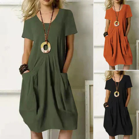 Jane™ - Klassisk & Bekväm Lös Klänning med Rund Halsringning